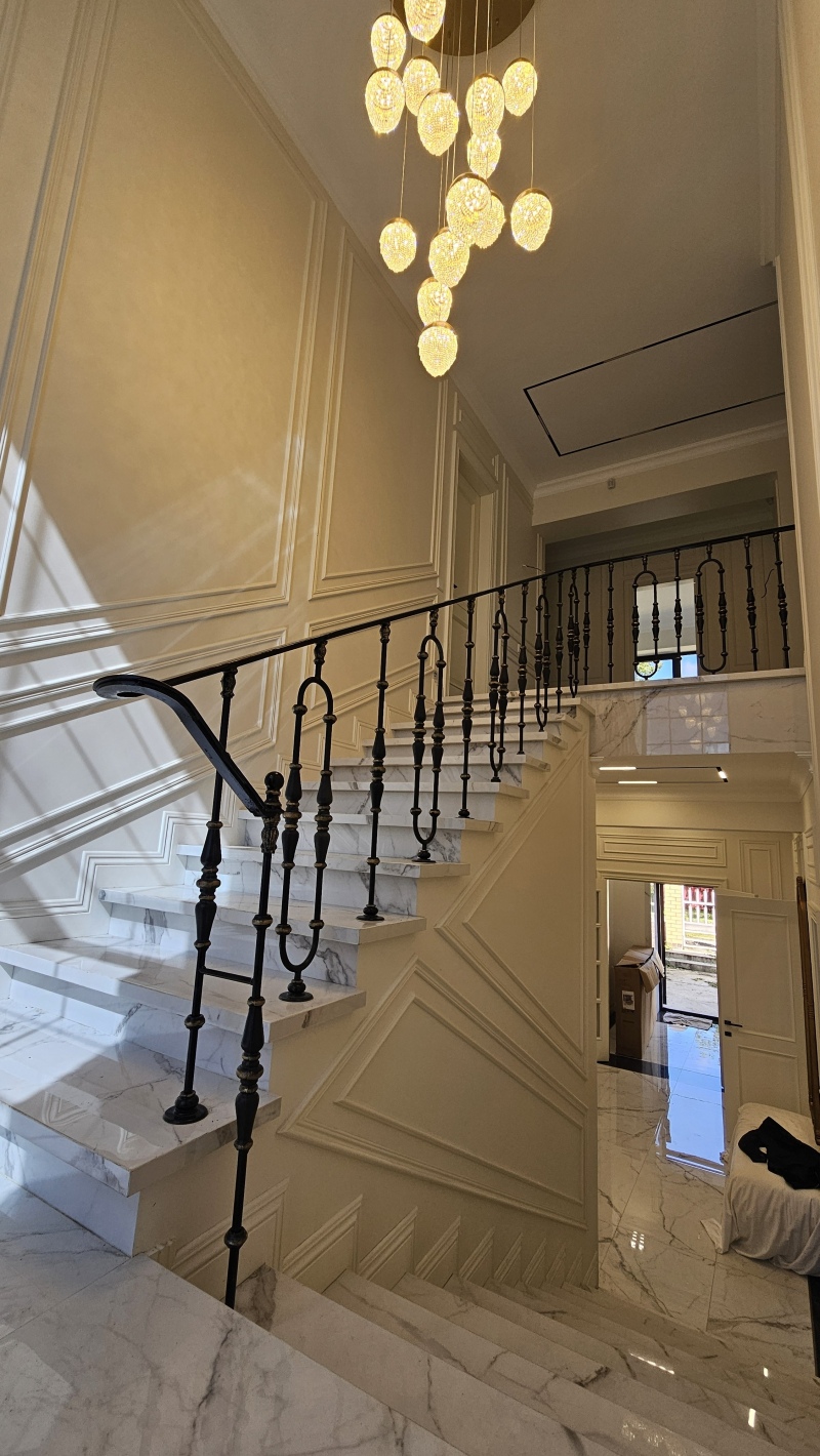 Возможно выковать и всю лестницу целиком. Использование художественной ковки в процессе изготовления основания, ступеней, перил, поручней помогает создавать очень прочные ажурные композиции. Разумеется, такой подход увеличивает стоимость заказа: в нашей мастерской цена кованой лестницы составит от 200 000 рублей за метр высоты (сюда не входит стоимость доставки в Твери и монтажа на объекте).
